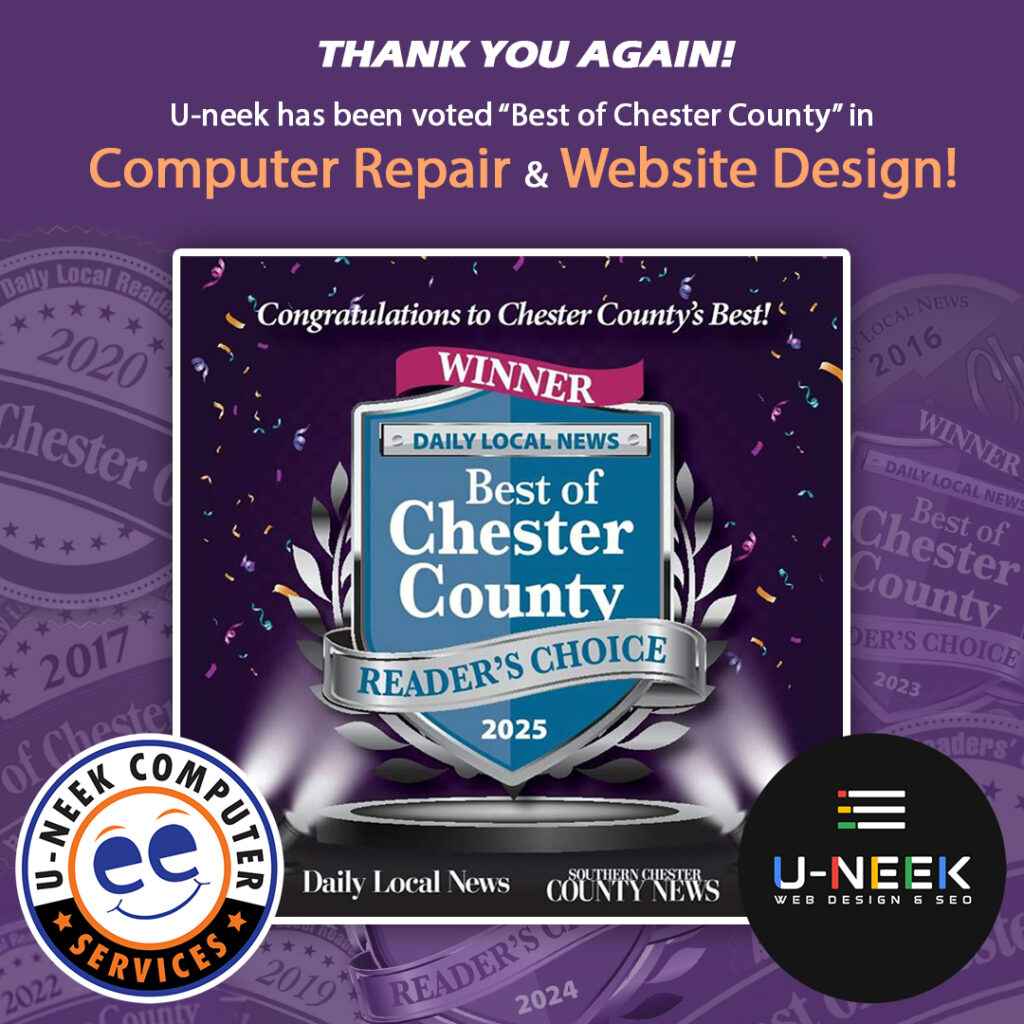 Our dedication to exceptional IT service and customer satisfaction has earned us multiple awards, including The Daily Local News Reader’s Choice Award in 2016, 2017, 2019, 2020, 2021, 2022, 2023, 2024, and 2025.